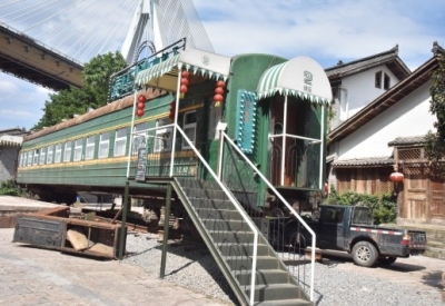 在马桑溪古镇上,有这么一个地方,没有传统的楼房建筑,没有象征喜庆的红色灯笼,而是一节废旧的绿皮车厢。它与呼啸而过的火车一墙相隔,不载物,也不奔跑,每天只是安静地驻足在此,接待来来往往的“游客”。它就是坐落在我区马桑溪古镇的硬座22号。